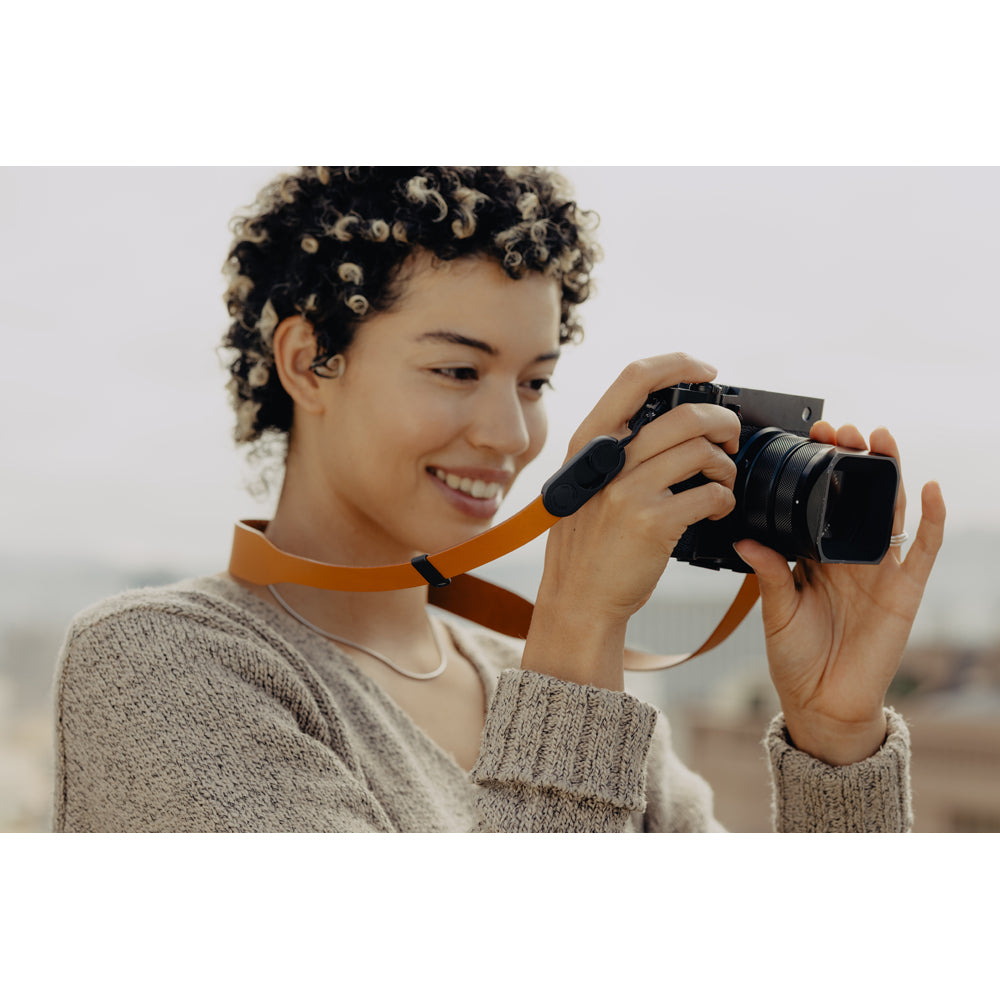 「フォーム レザー」は、ミニマルでかさばらないシンプルなカメラストラップです。柔らかく耐久性に優れ、経年変化を楽しめる上質なフルグレインレザー(牛革)を使用。目に見える縫い目などを削ぎ落とし、時代を超えて愛されるクリーンな外観と使用感を実現しました。